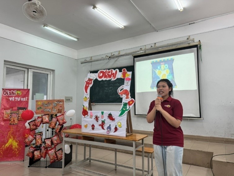 Sinh viên ngành Quản lý siêu thị Trường Cao đẳng Kinh tế Đối ngoại thực hành Giới thiệu sản phẩm siêu thị