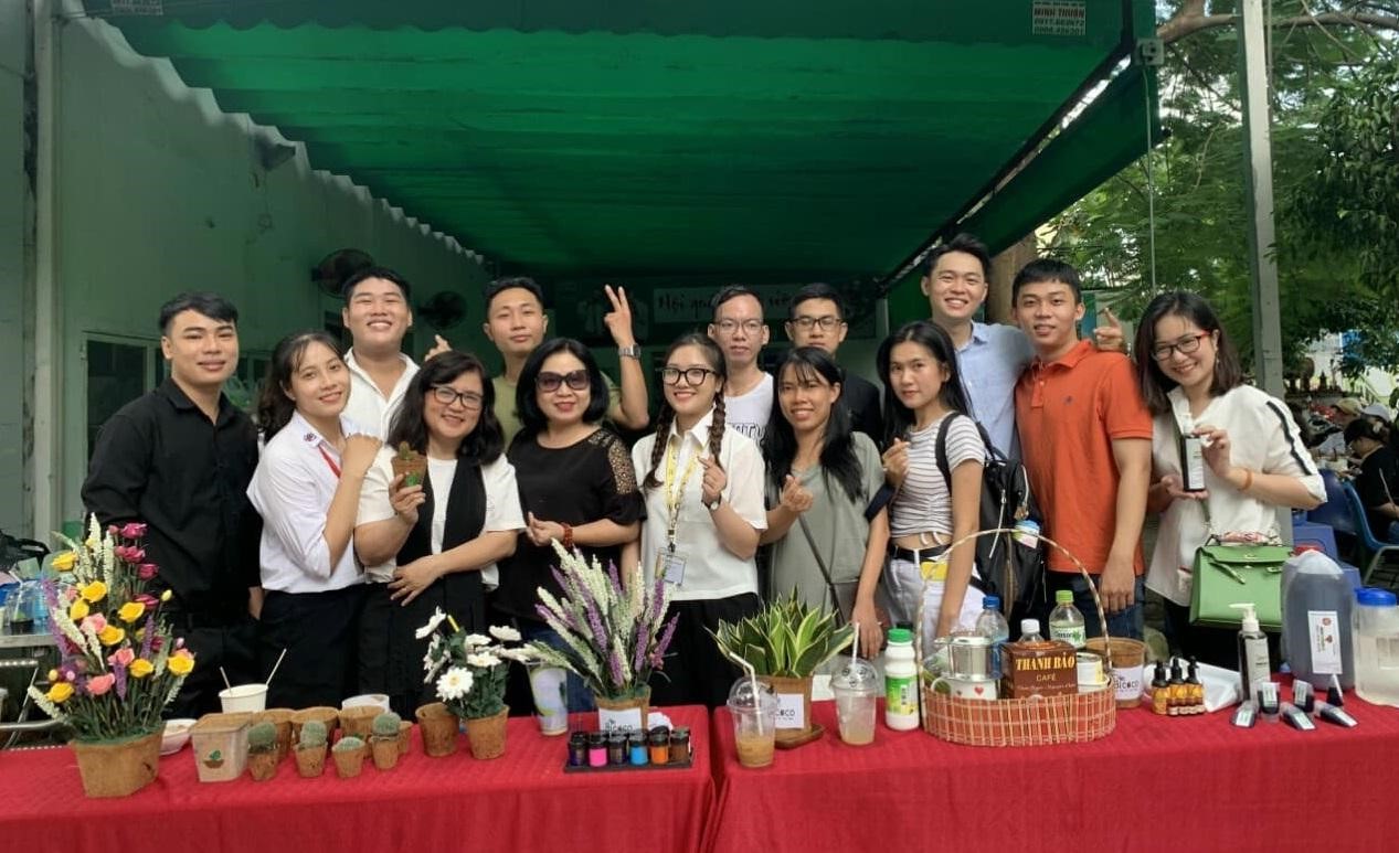 Các anh chị cựu SV ngành Marketing tham gia hội chợ