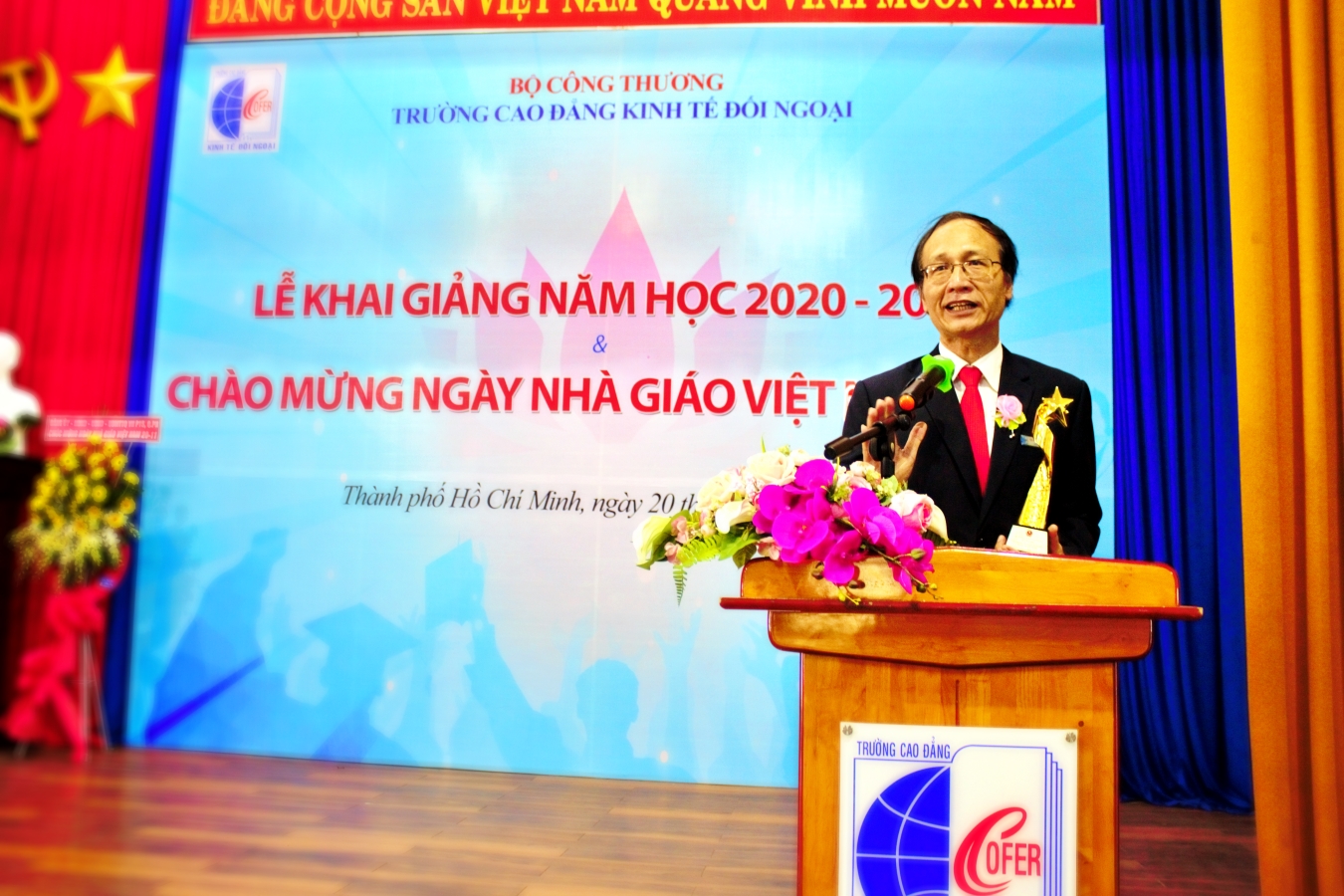 Nhằm tri ân ngày Nhà giáo Việt Nam và bày tỏ sự biết ơn đến các cán bộ, giảng viên đã và đang công tác tại Trường, sáng ngày 20/11/2020, trường Cao đẳng Kinh tế Đối ngoại đã long trọng tổ chức Lễ kỷ niệm ngày Nhà giáo Việt Nam và lễ Khai giảng năm học mới 2020.
