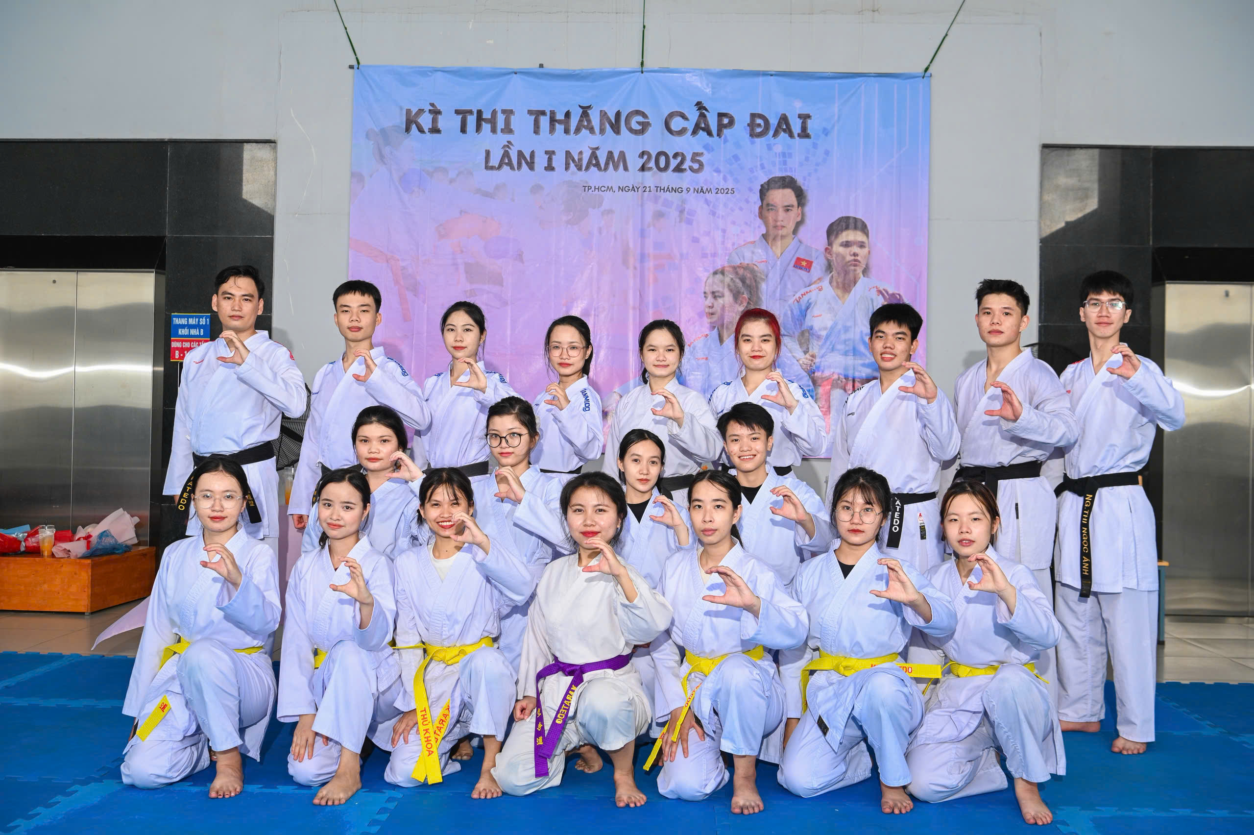 Tập thể Câu lạc bộ Karate COFER cùng chụp ảnh lưu niệm, ghi lại khoảnh khắc ý nghĩa của kỳ thi thăng cấp đai lần I – năm 2025.