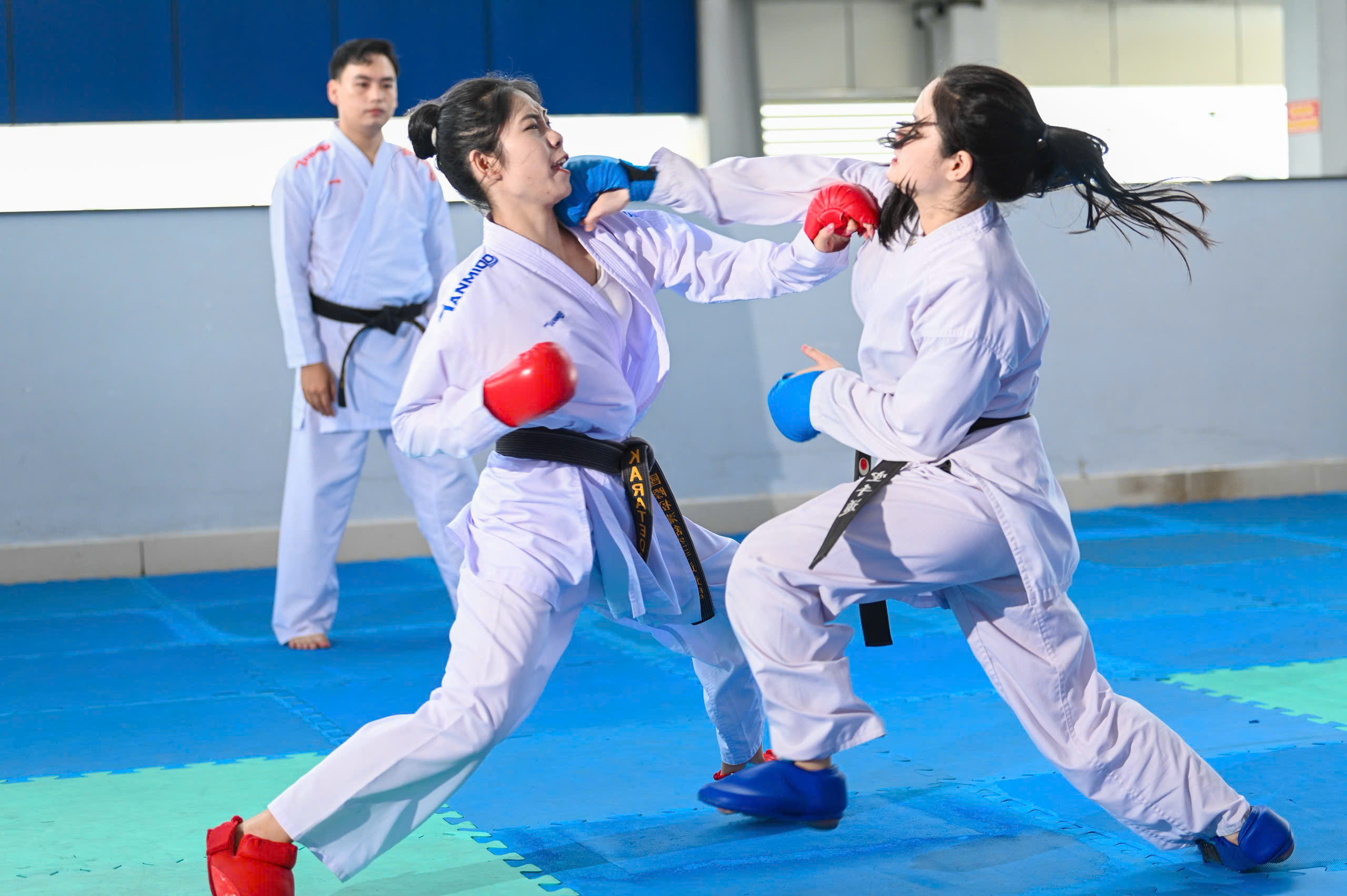 4. Kumite - Đối kháng: Thực chiến đối kháng theo luật thi đấu, rèn sự bản lĩnh, tốc độ và tinh thần thượng võ.