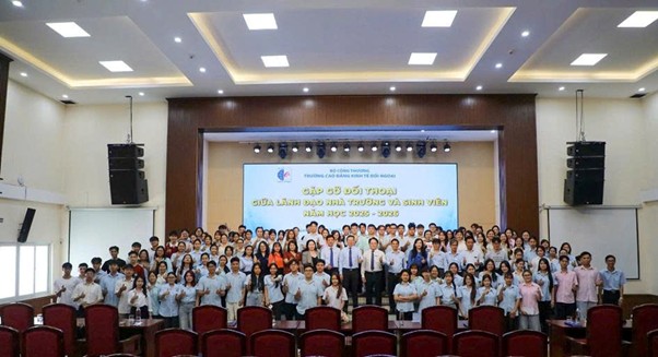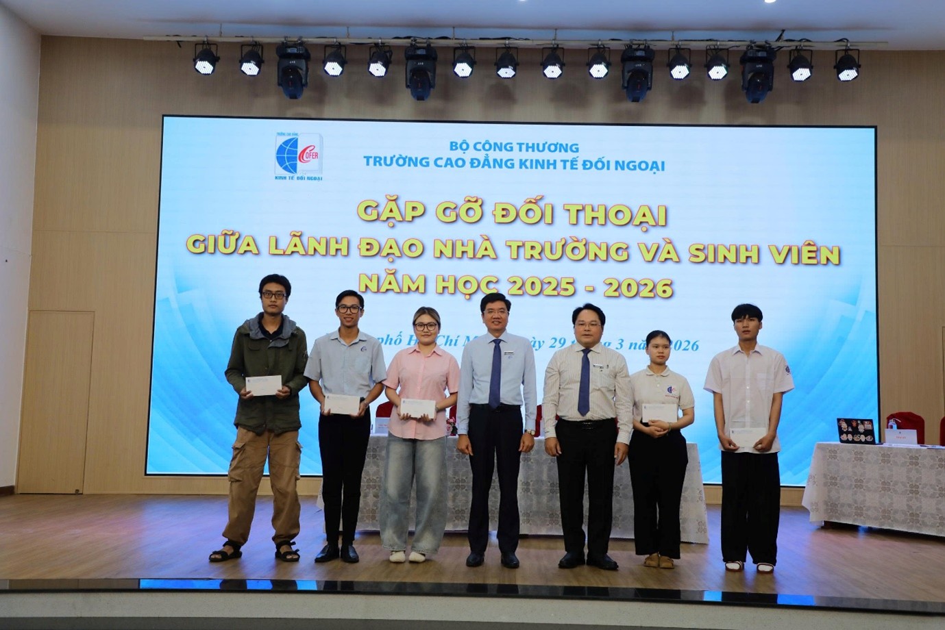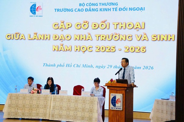Sáng ngày 29 tháng 3 năm 2026, tại Hội trường A201, Trường Cao đẳng Kinh tế Đối ngoại đã tổ chức chương trình “Gặp gỡ, đối thoại giữa Lãnh đạo Nhà trường và sinh viên” năm học 2025–2026 với sự tham dự của Ban Giám hiệu, lãnh đạo các đơn vị và đại diện sinh viên các lớp.
