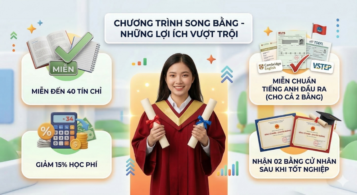 Chương trình song bằng ngành Tiếng Anh Thương mại khác gì so với chương trình tiêu chuẩn?