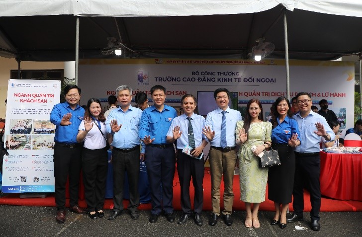 Tại ngày hội, Trường Cao đẳng Kinh tế Đối ngoại mang đến gian hàng giới thiệu ngành Quản trị Khách sạn và ngành Quản trị Dịch vụ Du lịch và Lữ hành, thu hút sự quan tâm của nhiều học sinh, sinh viên và phụ huynh. Gian hàng được thiết kế sinh động với hình ảnh, video, brochure giới thiệu chương trình đào tạo, thể hiện các hoạt động học tập và thực hành của sinh viên. Nổi bật nhất là phần biểu diễn pha chế và trải nghiệm thực hành pha chế do sinh viên Khoa Quản trị Kinh doanh thực hiện, mang đến không khí sôi nổi, gần gũi và tạo cơ hội cho học sinh được trực tiếp tham gia trải nghiệm nghề nghiệp.