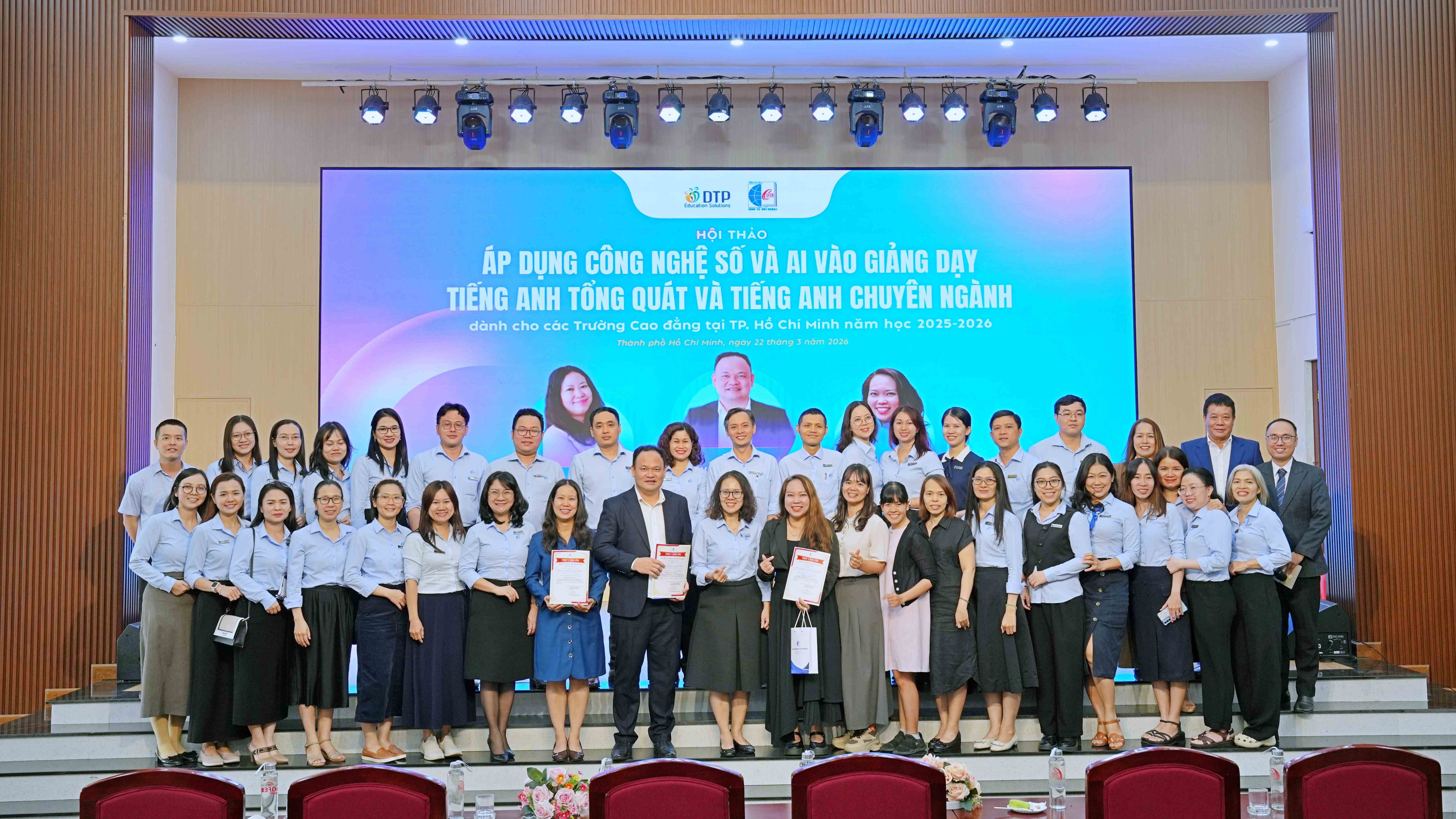Sáng ngày 22/03/2026, Trường Cao đẳng Kinh tế Đối ngoại (COFER) phối hợp cùng Tập đoàn Giáo dục Đại Trường Phát tổ chức hội thảo chuyên đề “Áp dụng Công nghệ số & AI vào Giảng dạy Tiếng Anh Tổng quát và Tiếng Anh Chuyên ngành”.