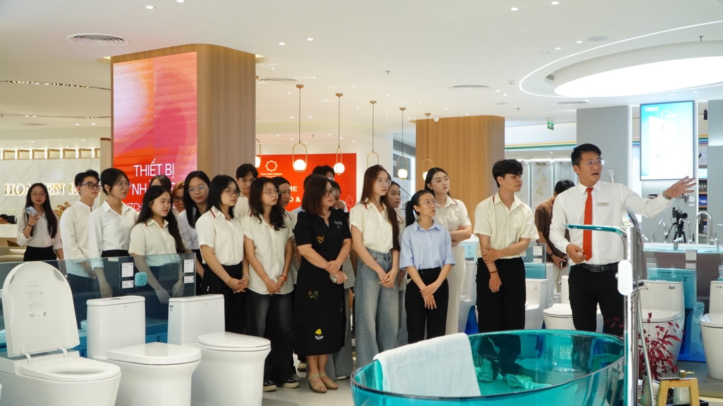 Sinh viên trải nghiệm thực tế tại không gian trưng bày sản phẩm Hoa Sen Home