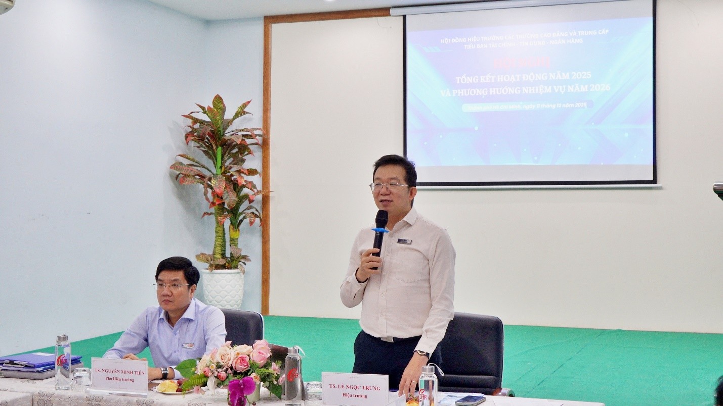 Chiều ngày 11/12/2025, tại Hội trường A305 - Trường Cao đẳng Kinh tế Đối ngoại (COFER), Tiểu ban Tài chính – Tín dụng – Ngân hàng đã tổ chức Hội nghị Tổng kết hoạt động năm 2025 và triển khai phương hướng nhiệm vụ năm 2026. Sự kiện diễn ra trong không khí nghiêm túc, thể hiện sự phối hợp chặt chẽ của các trường cao đẳng – trung cấp trong Tiểu ban nhằm nâng cao chất lượng đào tạo và thúc đẩy tính liên kết trong lĩnh vực tài chính, tín dụng và ngân hàng.