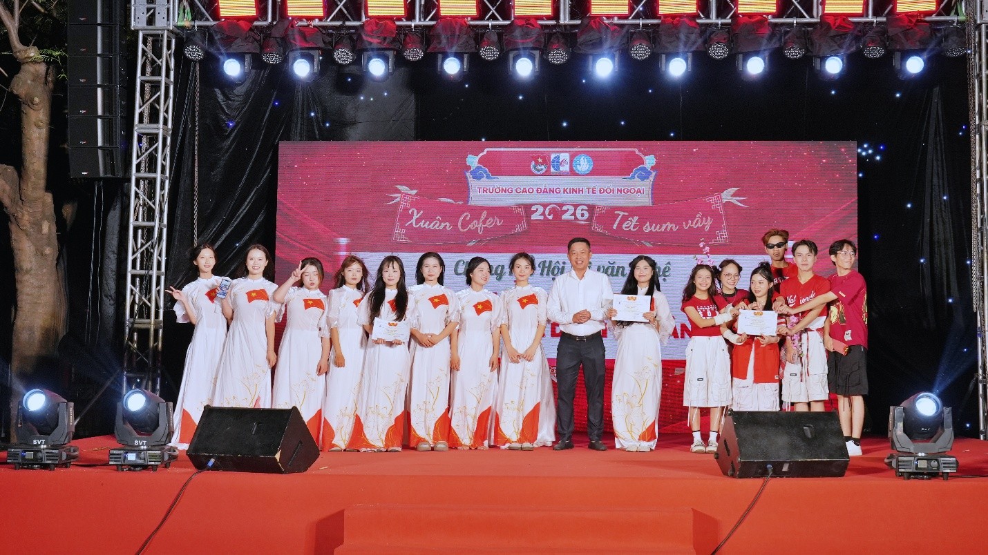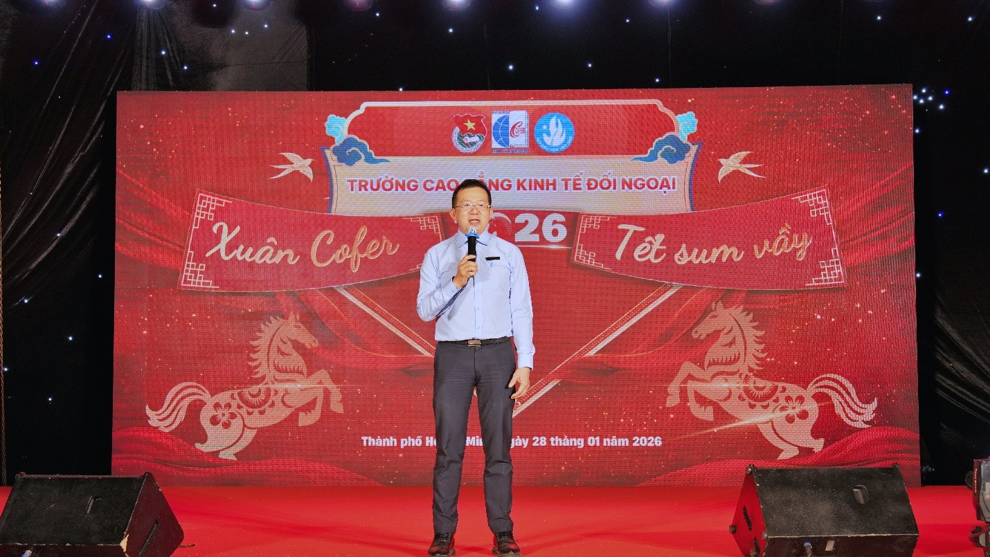 Trong không khí rộn ràng của những ngày đầu xuân Bính Ngọ 2026, Trường Cao đẳng Kinh tế Đối ngoại (COFER) đã long trọng tổ chức Hội Xuân COFER 2026 – một sự kiện văn hóa – tinh thần giàu ý nghĩa, quy tụ đông đảo viên chức, người lao động và sinh viên toàn trường.