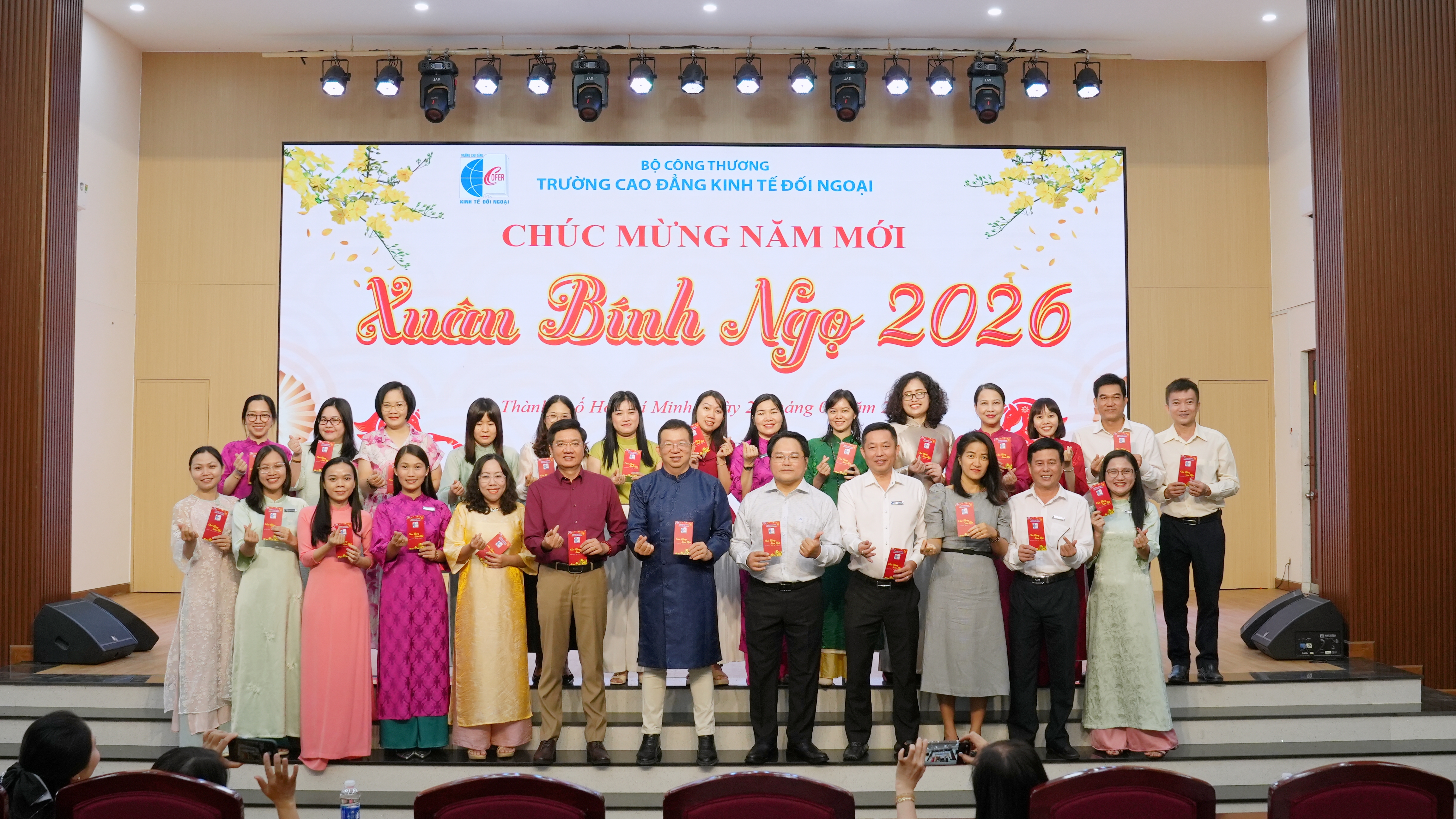 Buổi họp mặt khép lại trong không khí hân hoan, ấm áp và tràn đầy khí thế. Tập thể Trường Cao đẳng Kinh tế Đối ngoại cùng nhau bước vào năm Bính Ngọ 2026 với tinh thần sẵn sàng đổi mới, sáng tạo và quyết tâm hoàn thành xuất sắc các mục tiêu đã đề ra.