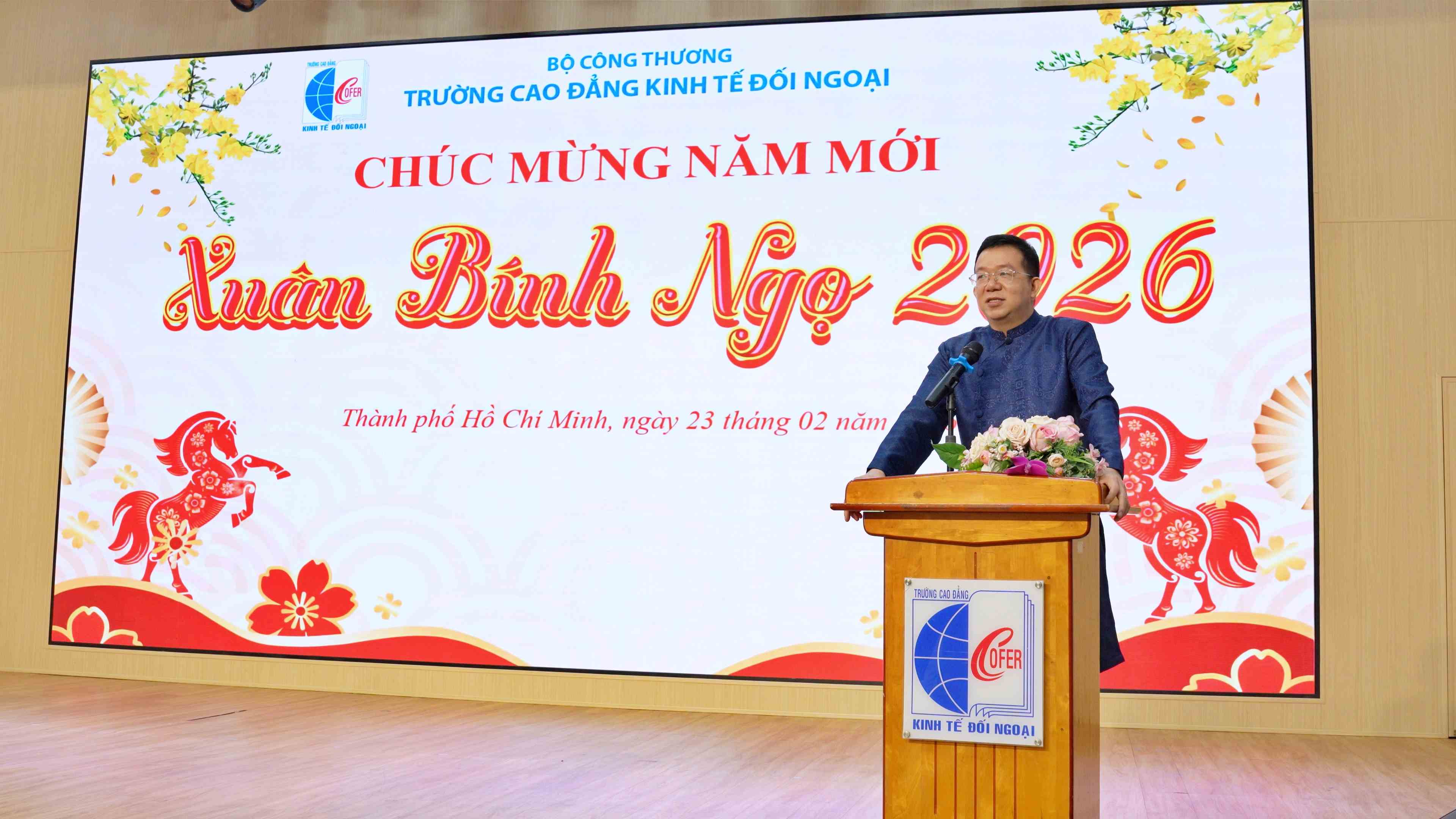 Trong không khí rộn ràng những ngày đầu năm mới, hôm nay, Trường Cao đẳng Kinh tế Đối ngoại đã long trọng tổ chức chương trình Họp mặt đầu Xuân Bính Ngọ 2026 với sự tham dự của Ban Giám hiệu, quý thầy cô giáo, viên chức và người lao động toàn trường.