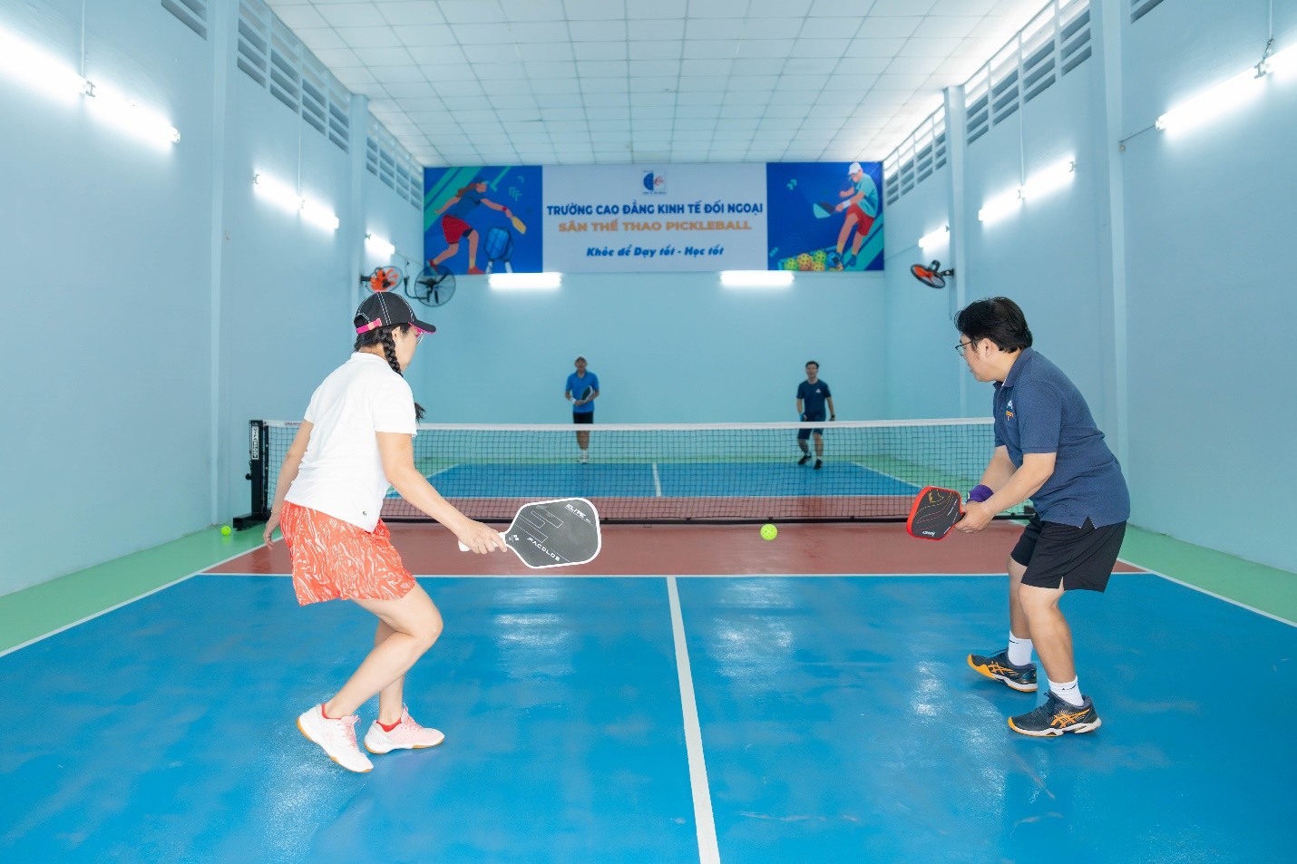Pickleball là môn thể thao kết hợp tinh hoa của quần vợt, cầu lông và bóng bàn, hiện đang trở thành xu hướng toàn cầu bởi tính chất dễ chơi, năng động và giàu tính gắn kết. Với sân Pickleball mới được đưa vào sử dụng, sinh viên Trường Cao đẳng Kinh tế Đối ngoại có thêm một không gian hiện đại để tăng cường vận động, cải thiện sức khỏe và gắn kết bạn bè.