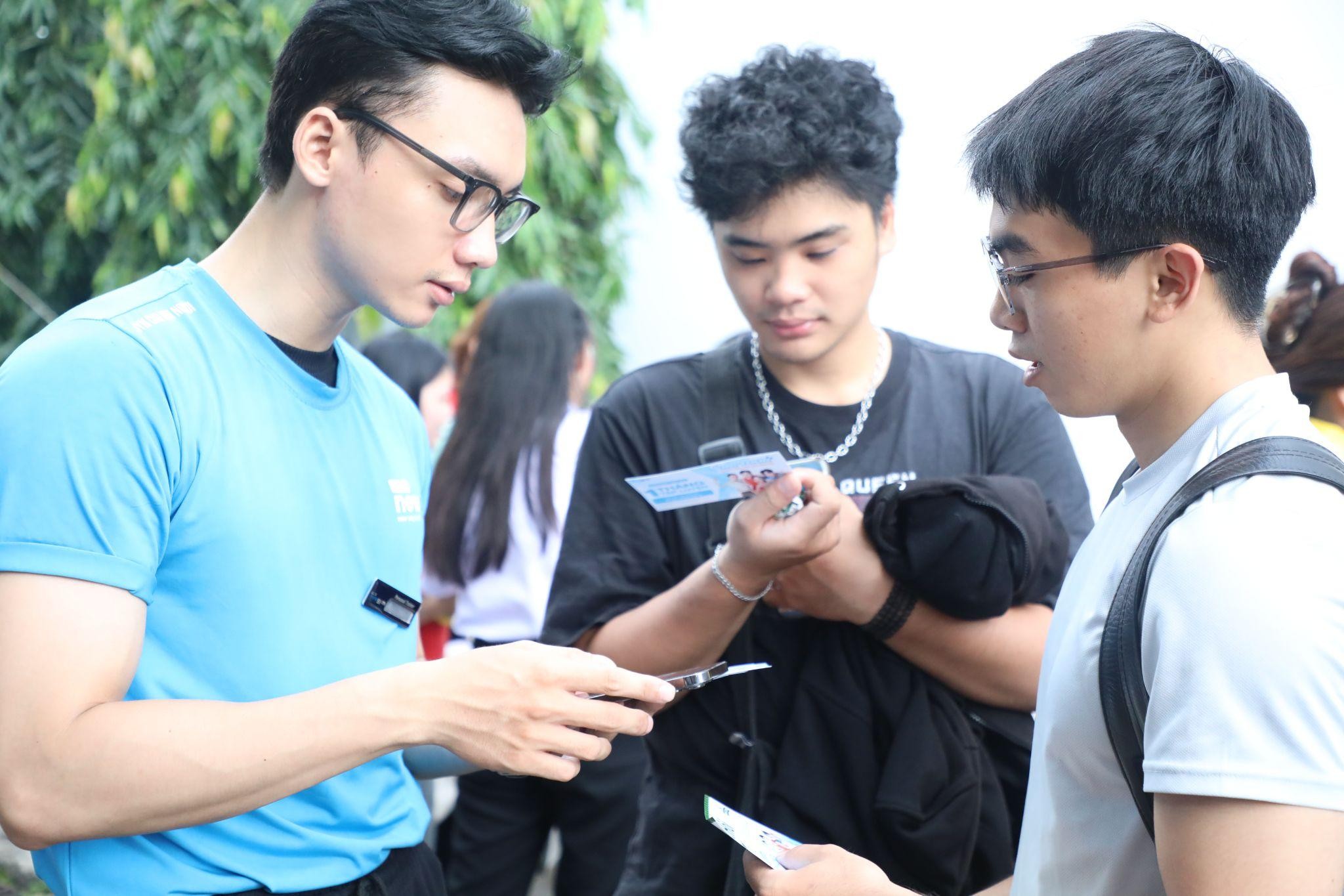 Sinh viên tìm hiểu thông tin tuyển dụng và tham gia hoạt động tại các gian hàng của doanh nghiệp