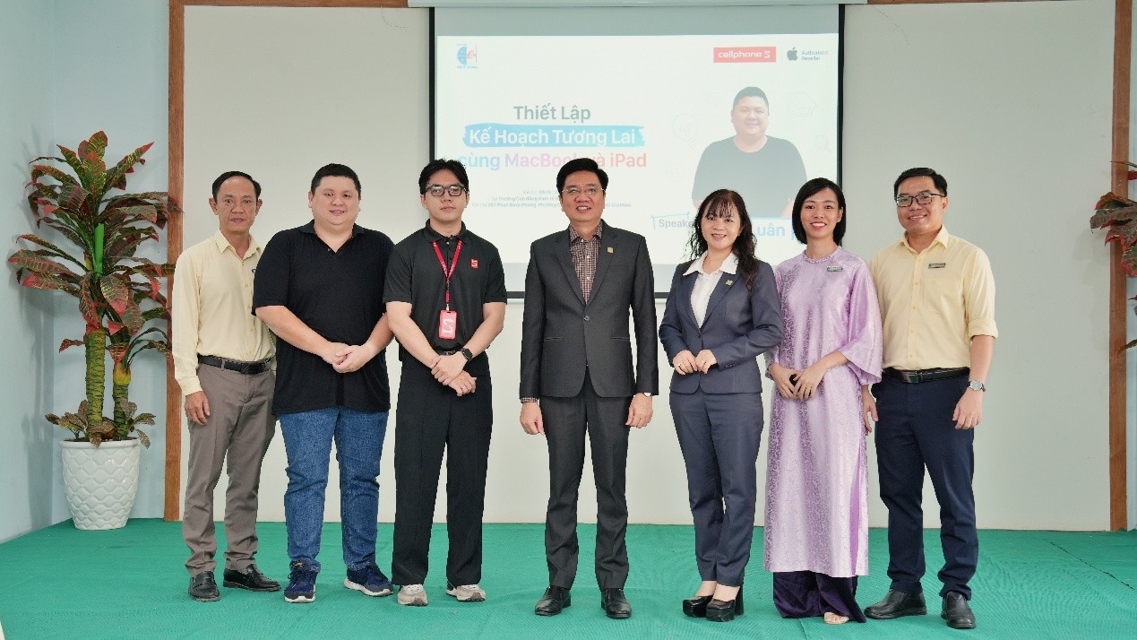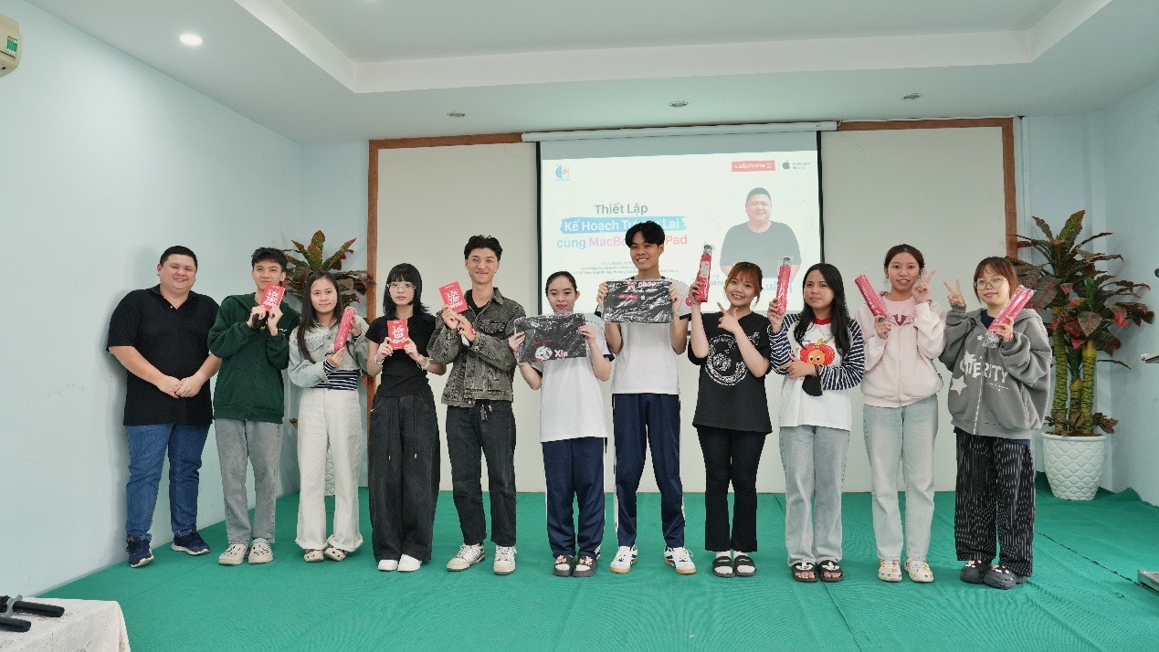 Sinh viên Quản trị Kinh doanh cùng KOL Duy Luân bên các thiết bị Aplle hỗ trợ thiết lập kế hoạch tương lai