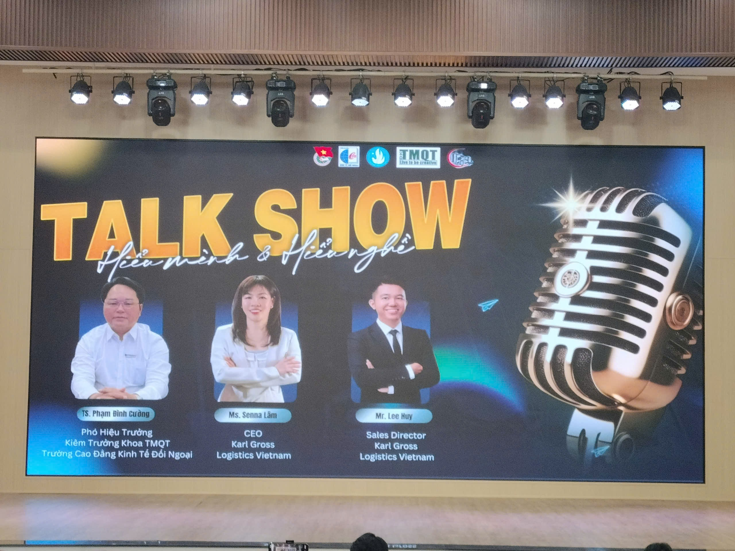 TS. Phạm Đình Cường đã có những chia sẻ tâm huyết về tầm quan trọng của việc nắm vững kiến thức nền tảng kết hợp với kỹ năng mềm. Tiếp nối chương trình, đại diện từ Karl Gross Logistics Việt Nam – Chị Senna Lâm và Anh Lee Huy đã mang đến những câu chuyện "người thật, việc thật" của chính mình, từ những áp lực, kỹ năng xử lý tình huống phát sinh cho đến niềm vui khi hoàn thành một lô hàng khó, tất cả đều được chia sẻ cởi mở.
