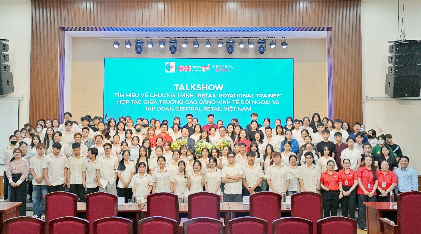 Ngày 02/4/2026, Trường Cao đẳng Kinh tế Đối ngoại (COFER) đã phối hợp cùng Central Retail Việt Nam tổ chức thành công Talkshow giới thiệu chương trình “Retail Rotational Trainee” dành cho sinh viên các chuyên ngành của nhà trường. Sự kiện thu hút đông đảo sinh viên tham dự, đặc biệt là những sinh viên quan tâm đến lĩnh vực Quản lý siêu thị, Quản trị bán lẻ và cơ hội phát triển nghề nghiệp trong môi trường doanh nghiệp hiện đại.