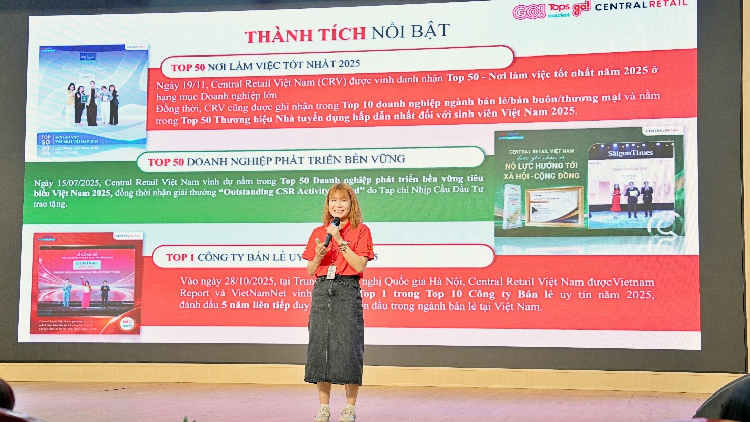 Mở đầu chương trình, Ông Nguyễn Quốc Khánh – Quản lý cao cấp thu hút nhân tài của Tập đoàn Central Retail Việt Nam đã giới thiệu tổng quan về tập đoàn – một trong những đơn vị bán lẻ hàng đầu khu vực châu Á, đang sở hữu và vận hành nhiều thương hiệu bán lẻ lớn tại Việt Nam. Thông qua phần trình bày, sinh viên được cập nhật thông tin về: