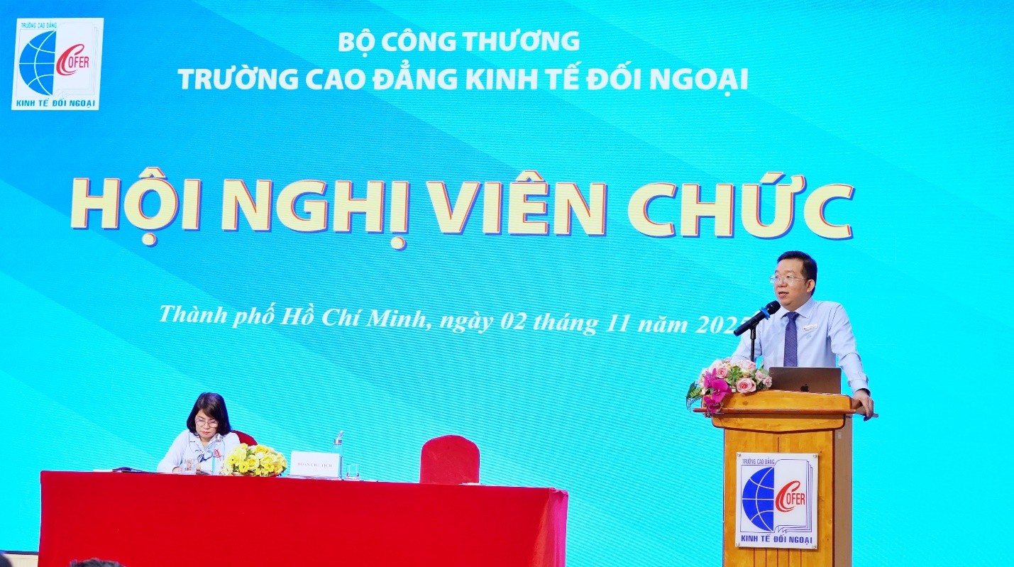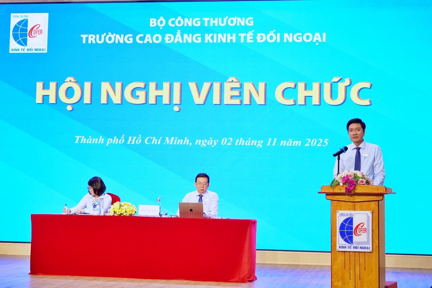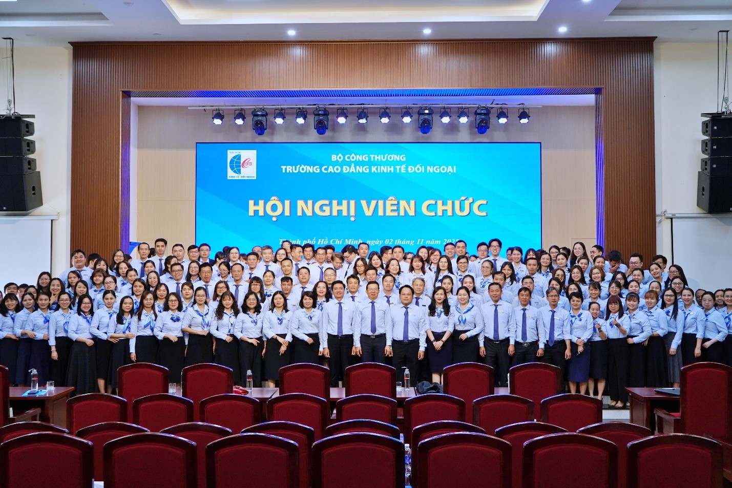 Kết thúc Hội nghị, tập thể viên chức và người lao động Nhà trường thể hiện tinh thần thống nhất, quyết tâm cao trong việc hoàn thành các nhiệm vụ năm học 2025–2026. Sự đồng lòng, đoàn kết và khát vọng phát triển của toàn thể cán bộ, giảng viên, nhân viên được xem là nền tảng vững chắc để Trường Cao đẳng Kinh tế Đối ngoại tiếp tục khẳng định vị thế là một trong những cơ sở giáo dục nghề nghiệp hàng đầu, tiên phong trong đào tạo nguồn nhân lực chất lượng cao, hội nhập cùng nền kinh tế quốc tế.
