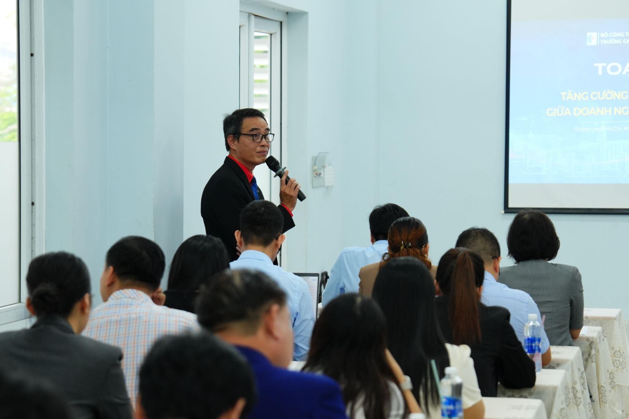 Buổi tọa đàm do TS. Lê Ngọc Trung – Bí thư Đảng ủy, Hiệu trưởng Nhà trường chủ trì, với mục tiêu tạo diễn đàn trao đổi cởi mở giữa Nhà trường và doanh nghiệp, cùng chia sẻ kinh nghiệm thực tiễn, định hướng hợp tác và nâng cao chất lượng đào tạo nguồn nhân lực. Trong phát biểu khai mạc, TS. Lê Ngọc Trung đã nhấn mạnh tầm quan trọng của việc tăng cường liên kết giữa đào tạo và nhu cầu thực tế của doanh nghiệp, coi đây là yếu tố then chốt để nâng cao năng lực nghề nghiệp cho sinh viên, đồng thời khẳng định Nhà trường luôn coi doanh nghiệp là đối tác chiến lược trong hành trình phát triển.