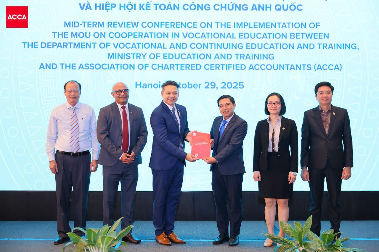 Đại diện ACCA chuyển giao bản dịch tiếng Việt chương trình Kế toán nền tảng (FIA) cho đại diện Cục Giáo dục nghề nghiệp và Giáo dục thường xuyên