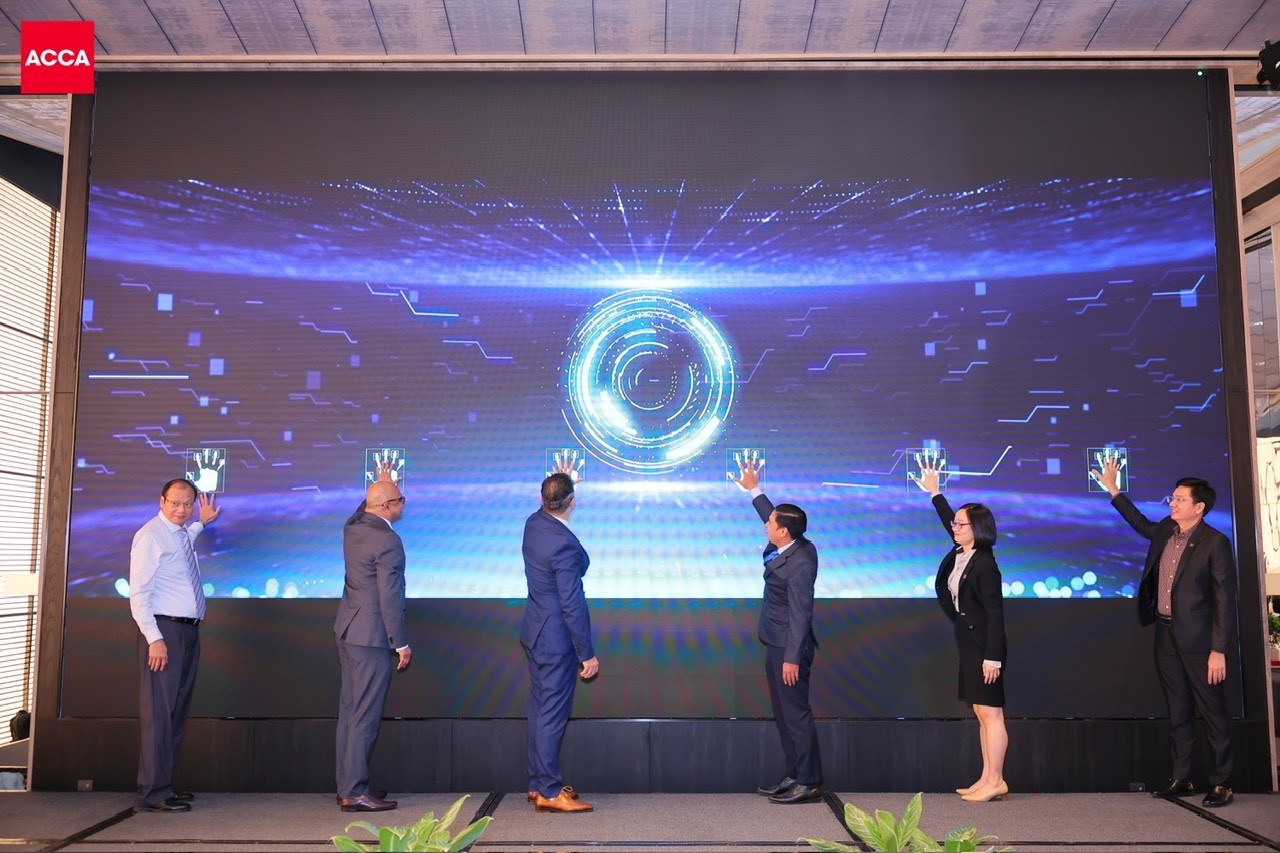 Trong khuôn khổ của Hội nghị, các đại biểu bấm nút chính thức ra mắt Bản dịch Tiếng Việt Chương trình Đào tạo Kế toán Nền tảng của ACCA.