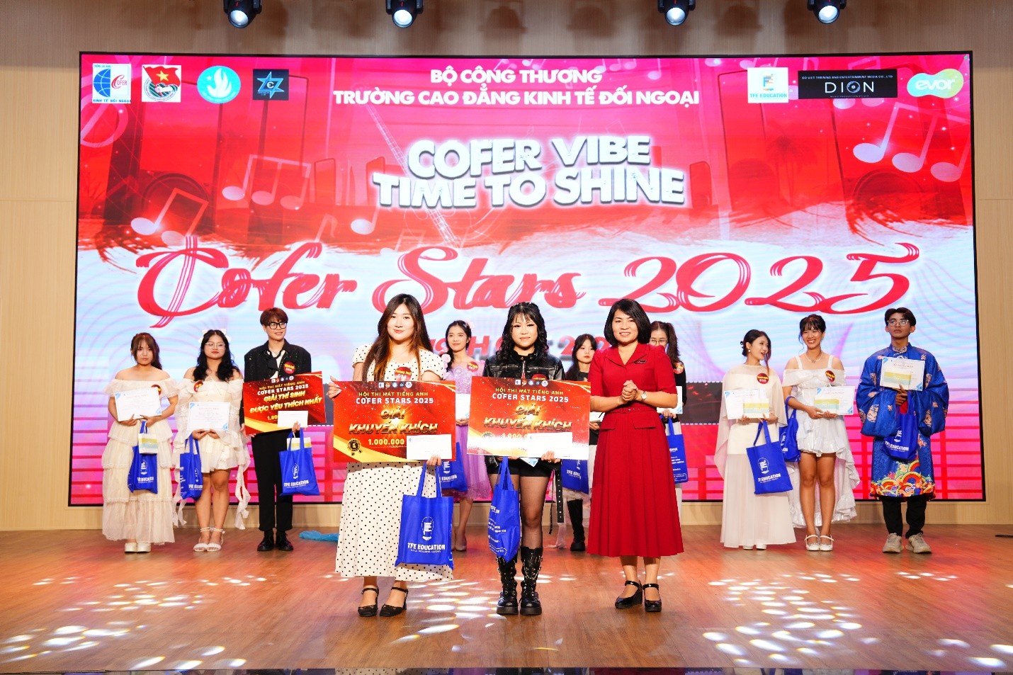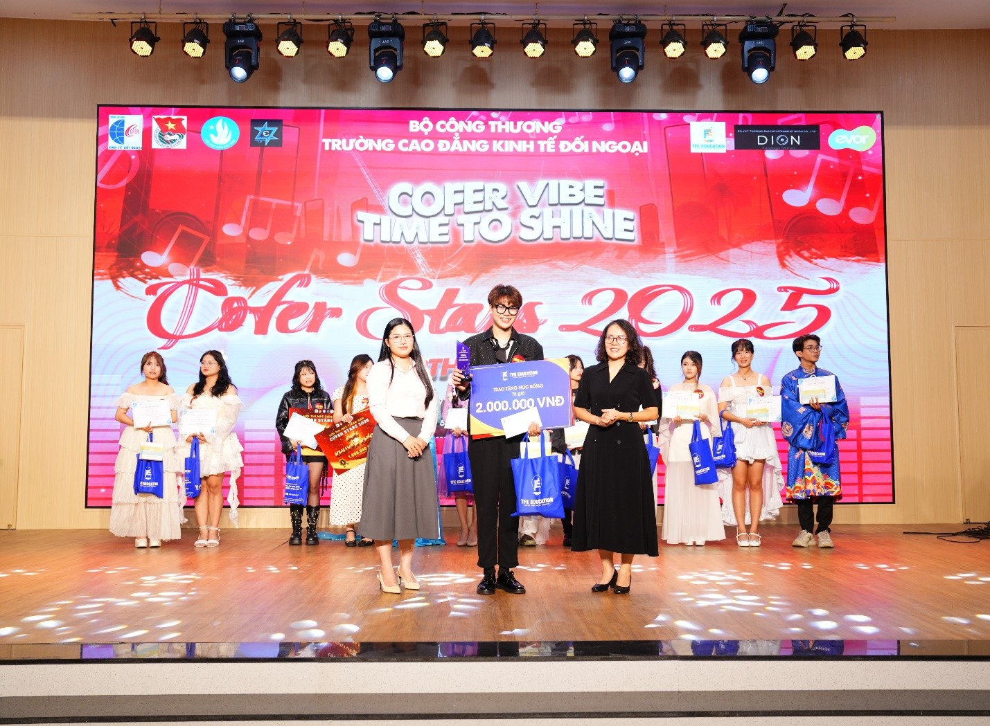 Hội thi “COFER STARS” 2025 đã khép lại với nhiều cảm xúc và những khoảnh khắc đáng nhớ. Mỗi phần trình diễn là một dấu ấn riêng, thể hiện tinh thần tự tin, sáng tạo và gắn kết của sinh viên Nhà trường. Thành công của chương trình tiếp tục khẳng định nỗ lực của Trường Cao đẳng Kinh tế Đối ngoại trong việc xây dựng môi trường học tập năng động, nơi sinh viên không chỉ được trau dồi kiến thức mà còn có cơ hội phát triển toàn diện về kỹ năng và cảm xúc.