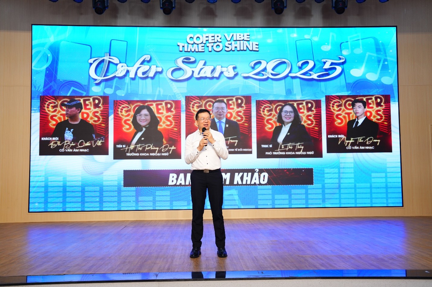 Ngày 19/10/2025, tại Hội trường A.201 – Trường Cao đẳng Kinh tế Đối ngoại (COFER), vòng chung kết Hội thi Hát Tiếng Anh “COFER STARS 2025” đã diễn ra trong không khí sôi nổi, trẻ trung và đầy cảm xúc. Cuộc thi do Nhà trường tổ chức nhằm tạo sân chơi bổ ích cho sinh viên được giao lưu, học hỏi và phát huy khả năng tiếng Anh thông qua âm nhạc.