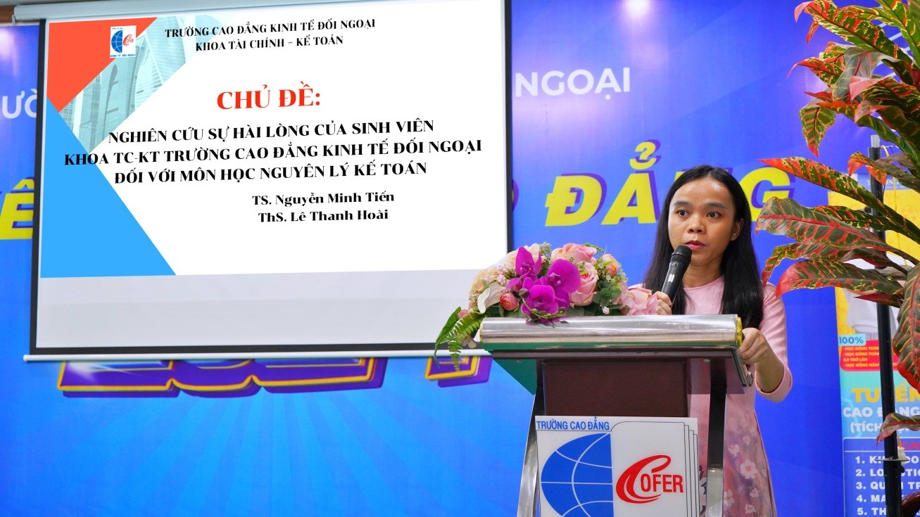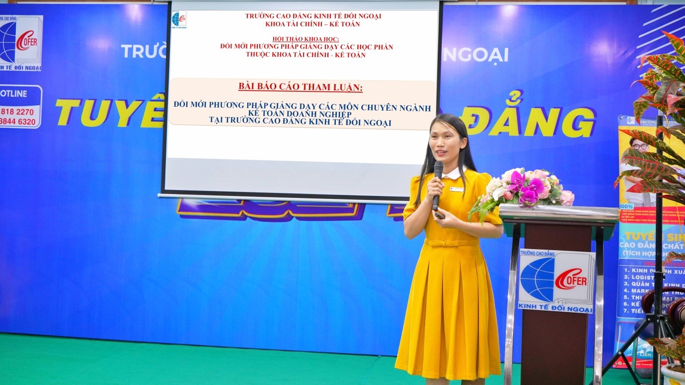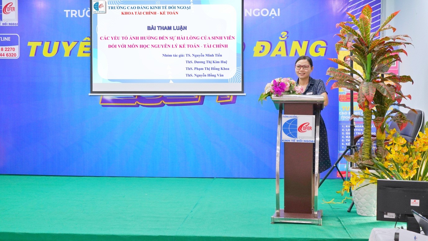 ThS. Phạm Thị Hồng Khoa – Giảng viên Khoa Tài chính – Kế toán trình bày báo cáo tham luận tại Hội thảo
