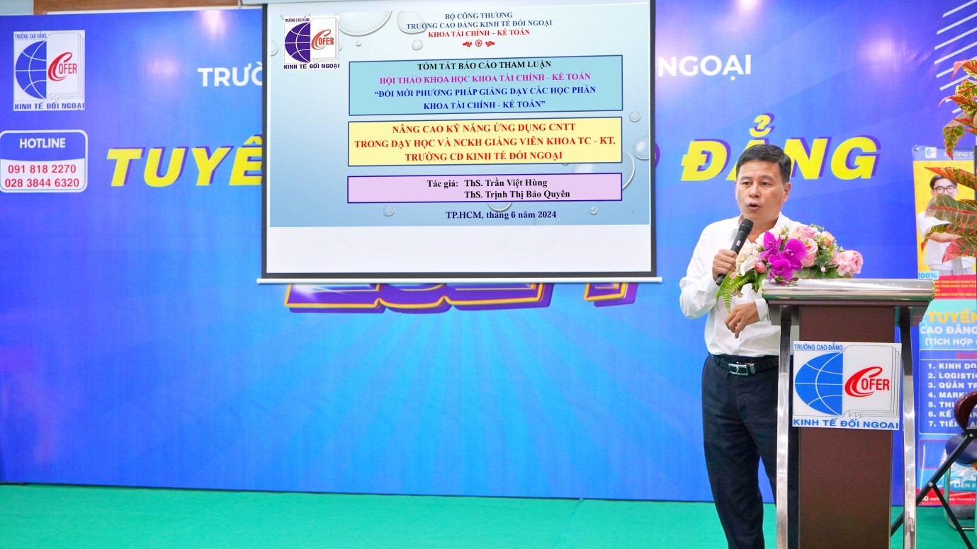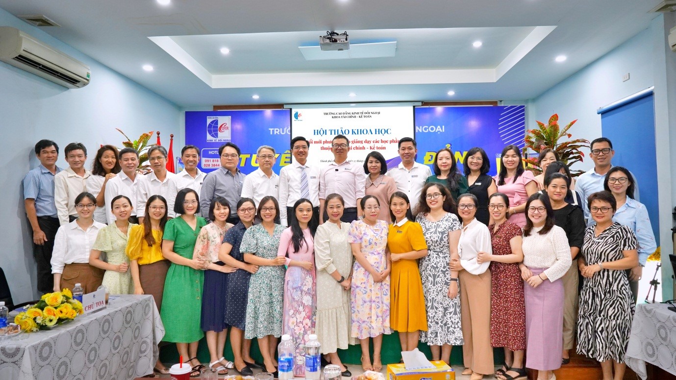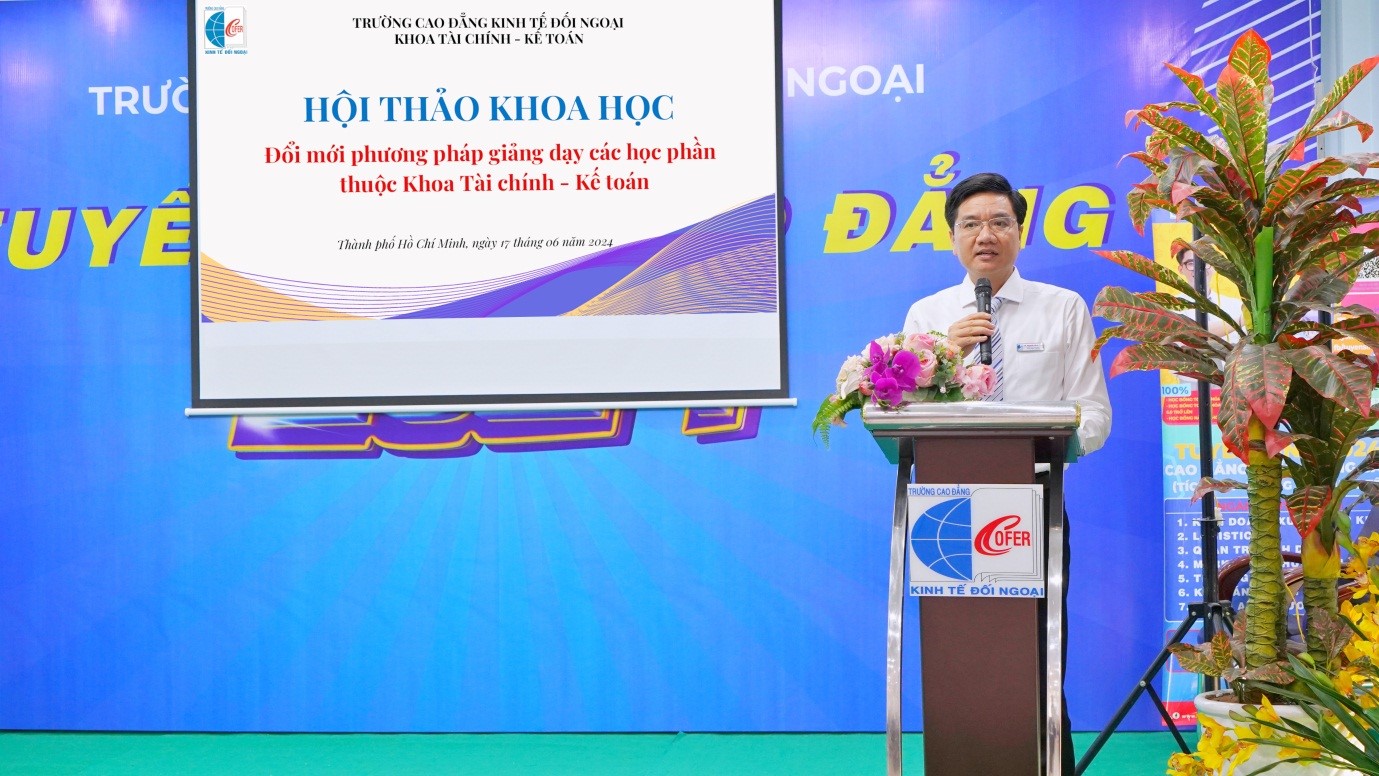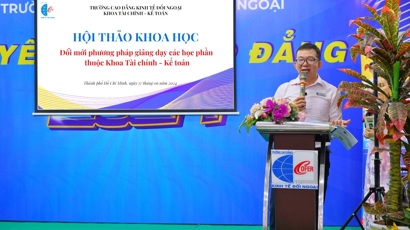 Trong xu thế hội nhập toàn cầu cùng sự bùng nổ của cuộc cách mạng công nghiệp 4.0, giáo dục và đào tạo đóng vai trò ngày càng quan trọng, trở thành kim chỉ nam cho sự phát triển bền vững của mọi quốc gia, dân tộc. Cùng với sự bùng nổ của khoa học – công nghệ, nguồn nhân lực trở thành yếu tố quyết định nhất tới sự phát triển bền vững của nền kinh tế tri thức. Với mục tiêu đào tạo sinh viên ra trường đáp ứng yêu cầu của thị trường lao động trong bối cảnh 4.0, ngày 17/06/2024 vừa qua, được sự đồng ý của Ban Giám hiệu Nhà trường, Khoa Tài chính – Kế toán đã tổ chức Hội thảo Khoa học với chủ đề:” ĐỔI MỚI PHƯƠNG PHÁP GIẢNG DẠY CÁC HỌC PHẦN THUỘC KHOA TÀI CHÍNH – KẾ TOÁN”.