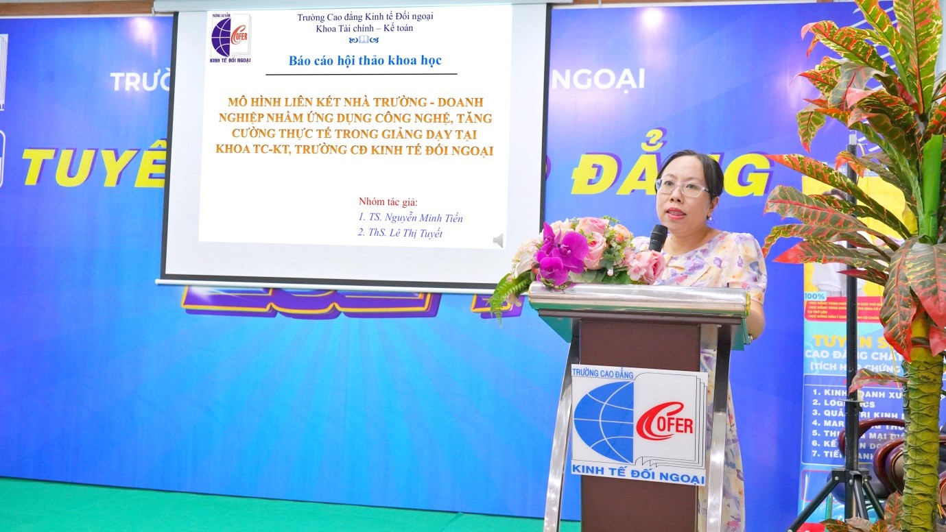 ThS. Lê Thị Tuyết – Giảng viên Khoa Tài chính – Kế toán trình bày báo cáo tham luận tại Hội thảo
